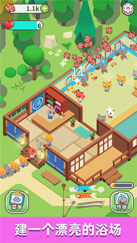 森林浴场是一款经营模拟类游戏,场景设定于幽静的森林之中,主角需要管理一家为动物顾客服务的洗浴场所,通过提供各类洗浴与休闲项目,满足不同动物的需求,从而逐步积累资源,对浴场的设施与环境进行改造与扩展。