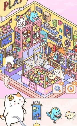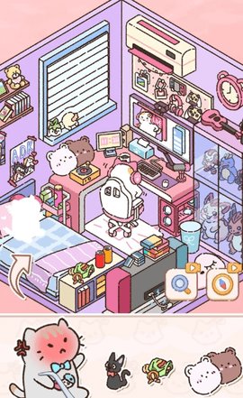 1、游戏内的房间装饰围绕贴纸展开,布置了形态各异的摆件和家居物品,这些细节增添了整体的观赏性。