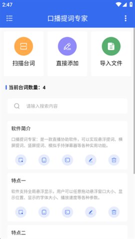 1、软件提供了拍照扫描功能,能够快速将纸质文稿或屏幕上的文字转换为可编辑的电子台词。