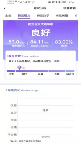 2、教师可以按班级、学科等维度查看考试的整体情况,包括平均分、分数段分布等。