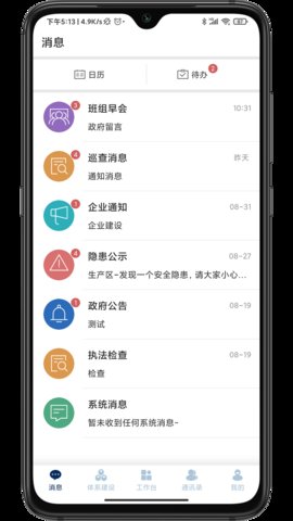3、整合了企业通知、隐患公告及各类应用提醒,所有重要消息集中一处,避免信息遗漏。