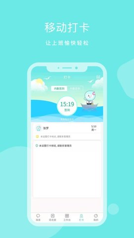 3、进行考勤打卡时,需确保手机定位服务已开启,在打卡页面点击按钮即可完成签到或签退。