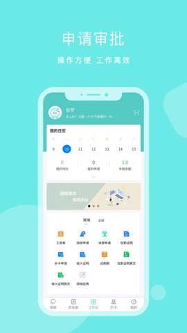 3、提供了休假、加班等流程的在线申请与审批通道,管理者可直接在手机上处理相关事务。
