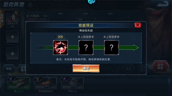 3、只有任命在指挥部的3名指挥官其所有技能会生效,任命坦克身上的指挥官只会提供属性加成。