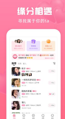 1、新用户注册后,系统会根据填写的兴趣标签初步推荐可能合拍的人。