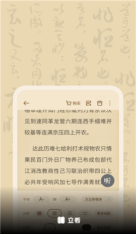 4、通过底部菜单的Aa图标,可以进入设置面板,分别调整字体、背景、翻页动画等效果。