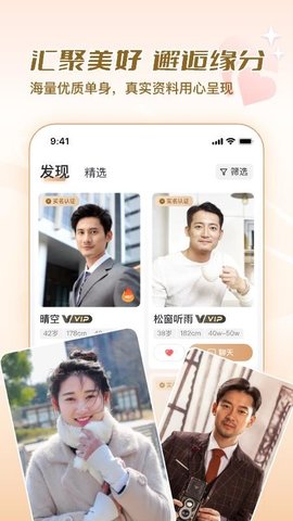 美缘婚恋是一款面向单身人士的婚恋服务软件,通过多重身份验证机制确保用户资料的真实性,平台汇集了大量经过审核的单身用户信息,支持在线浏览与即时沟通,帮助用户高效筛选并结识潜在的婚恋对象,整个流程注重信息安全和沟通效率。
