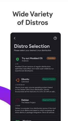 Andronix是一款在安卓设备上运行Linux系统的模拟工具,无需获取root权限即可安装,软件内置了多种Linux发行版本,包括Ubuntu、Debian、Kali等,直接在手机上体验完整的Linux命令行环境,甚至能够安装带有图形界面的桌面系统,进行编程开发或日常办公等操作,整个过程对设备性能的影响很小。