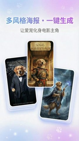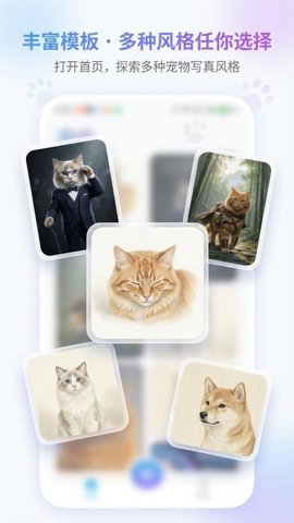 宠宠写真馆是一款通过AI技术处理宠物照片的软件,能够将普通宠物照片转化为风格多样的写真作品,用户上传宠物照片后,软件内置的智能模型会进行识别与处理,结合丰富的预设模板,快速生成具有艺术感的宠物肖像、趣味表情包或主题海报,整个过程操作简便,无需专业的摄影或修图技能,为宠物主人提供了一种便捷的个性化创作方式。