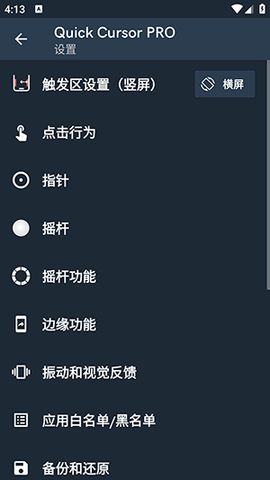 1、触发器区域可以自由调整大小和位置,用户能根据自己拇指最舒适的滑动起点进行设定。