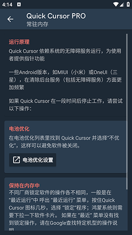 游戏全屏模式可能覆盖了触发层。在快速光标的高级设置中,开启覆盖全屏应用或类似权限开关。