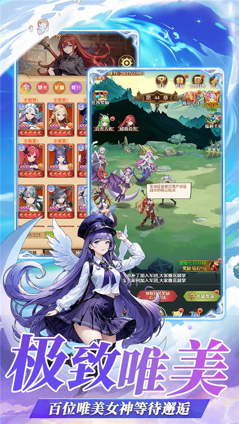 美术风格以唯美二次元为主,角色立绘精致,涵盖多种风格与主题的视觉设计。
