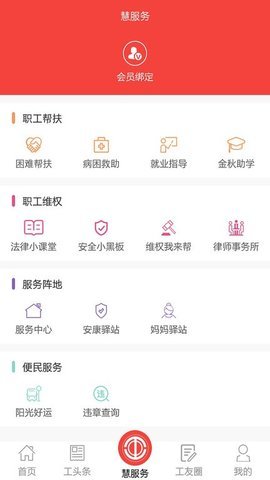 1、在登录页面使用工会系统登记的手机号码进行验证,完成身份注册与绑定。
