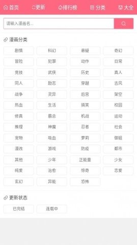 1、漫画库按题材、人气、更新状态等多维度分类,支持通过作品名、作者或标签进行精准搜索,并提供各类排行榜作为参考。