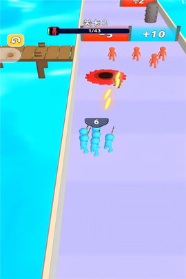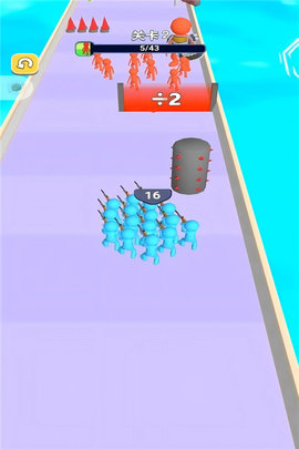 1、游戏起始于第一道赛道,控制角色左右移动,避开滚木、摆锤等会碰撞到队伍的障碍,触碰沿途的勇者加入队伍。