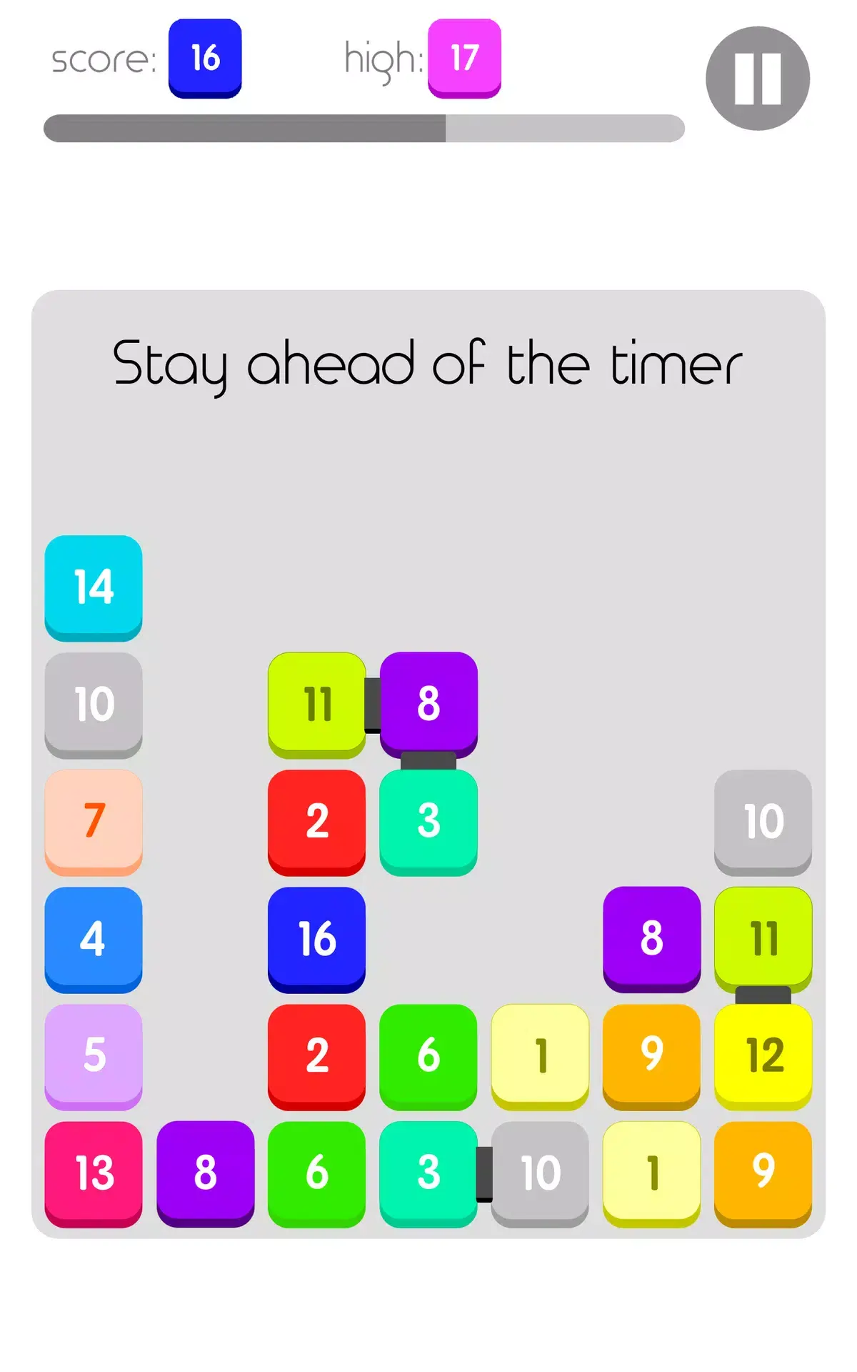 3、在掉落模式中,要有意识地在面板上方预留缓冲区域,以应对数字块持续下落带来的压力。