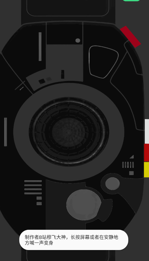 1、启动应用后,主界面会显示影月变身器的虚拟造型,中央通常为激活区域,持续按压该区域,设备会振动并播放完整的变身启动音,这个过程模拟了剧中按下腰带开关的动作。