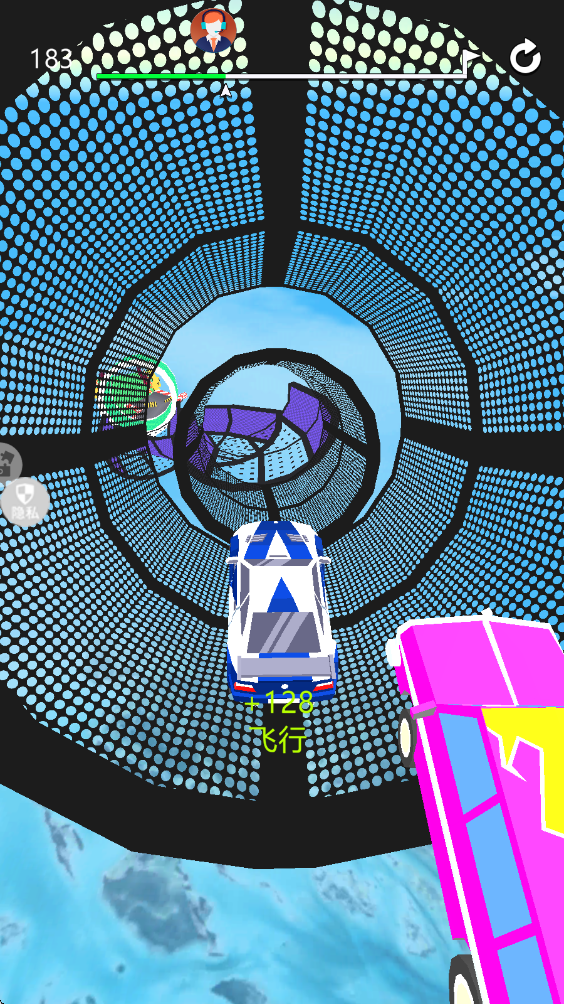 4、场景中的互动元素丰富,某些可破坏的障碍物或弹跳装置,为规划行驶路线提供了额外的策略选择。