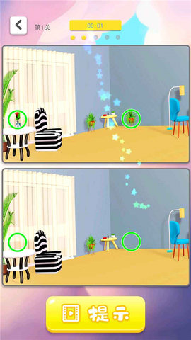 3、注意场景中的光影效果,例如在第一关的室内场景中,窗户投射的光斑形状、物品在地板上的倒影长度或深浅,都可能构成有效的差异点。