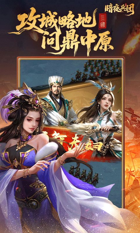暗夜兵团是一款三国策略游戏,游戏背景设定在群雄割据的乱世,参与者需要发展自己的城池,招募并培养历史上的知名将领,组建独特的作战部队,参与资源争夺和领土扩张,最终目标是实现天下一统的霸业,设置了国库机制,城池每小时会产生税收,秋季收缴后冬季分发给活跃玩家,激励玩家积极建设和征战。