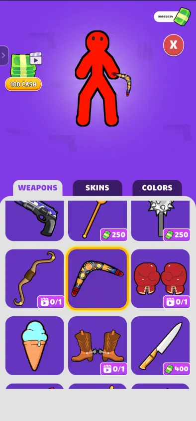 2、角色自定义选项允许调整火柴人的头部、躯干和四肢颜色,创造出外观独特的战斗角色。