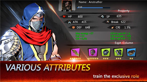 3、角色属性成长体系涵盖攻击、防御、暴击、破防、血量回复等多个维度,每次升级获得的属性点允许玩家自由分配,塑造不同的战斗风格。