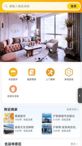 沪胖胖是一款整合了社区周边生活服务的工具,通过手机就能联系到附近的家电维修师傅,处理空调、电视或洗衣机的故障,也能浏览和购买超市里的酒水零食,查看本地的租房售房信息,下单后通常当天就能送达或安排服务。