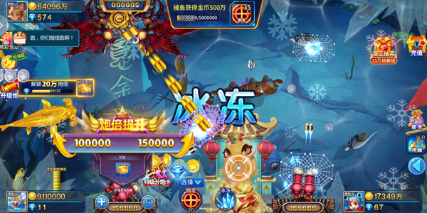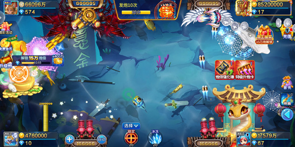 3、留意渔场中外观与众不同的Boss,当其身体发光或体积膨胀进入觉醒状态时,集中火力进行攻击,成功击败后的金币奖励会成倍增加。