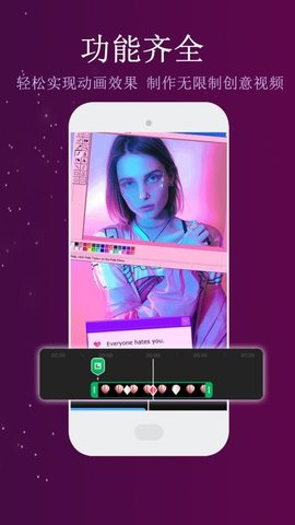 1、时间轴支持多轨道编辑,允许视频、音频、字幕与贴纸图层进行独立调整。