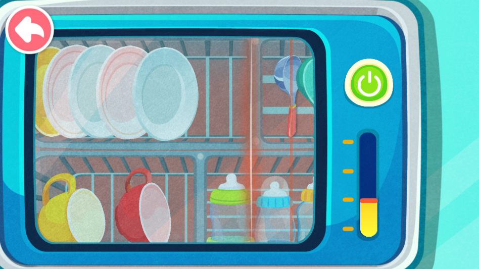 1、清洁流程的模拟非常细致,例如清洗餐具需要经历多个步骤,设计有助于儿童理解事务的先后顺序。