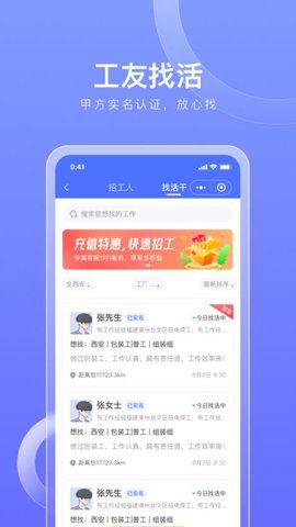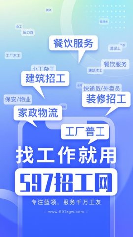 597招工是一款同城劳务对接的移动应用,覆盖建筑装修、家政服务、工厂普工及餐饮配送等多个行业,汇集了大量实时更新的岗位与人才信息,根据自身需求灵活查找工作或发布招工,有效缩短了求职与招聘的匹配周期。