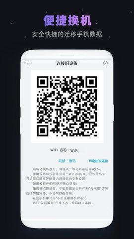 2、新旧手机之间建立连接的方式非常简便,只需一方生成二维码,另一方扫描即可快速配对成功。