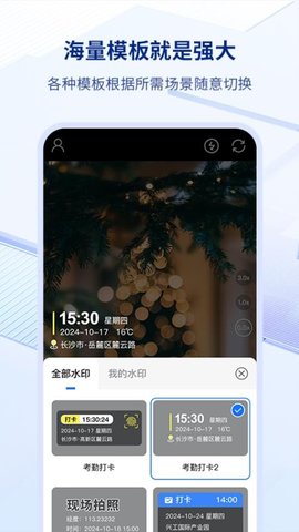 易拍水印打卡相机是一款用于工作记录与考勤管理的拍照工具,软件内置多种场景化水印模板,拍照时自动嵌入时间、地点等信息,照片拍摄清晰,便于后续整理与上报,简化了传统纸质或手动记录的流程。