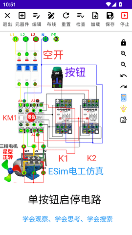 2、预设了家庭照明、电机正反转等多种典型电路案例,方便用户进行针对性练习。