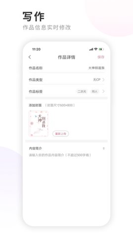 1、作品信息如书名、简介、分类等,在创作过程中可以随时进行修改和调整。