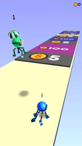4、竞赛中收集散落的金币,这些金币可用于兑换商店内不同的机器人外观。