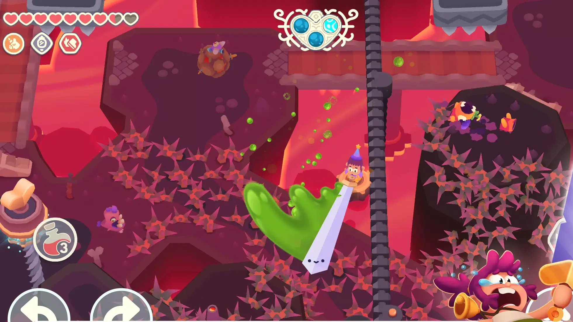 1、武器成长机制直接关联关卡设计,玩家需要预判宝剑尺寸以通过特定狭窄通道。