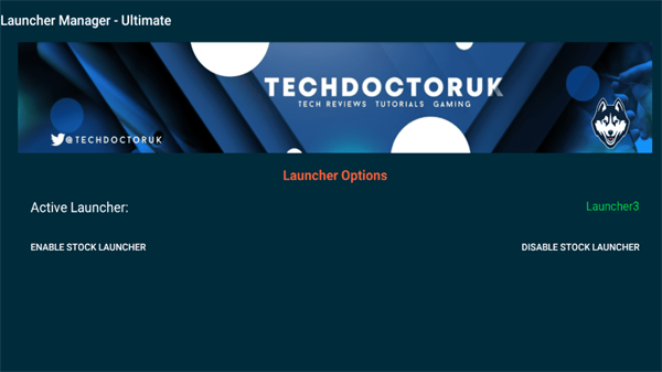1、在电视上安装并启动LM Ultimate电视版,在主界面找到并点击ENABLE STOCK LAUNCHER按钮。