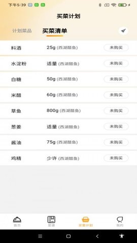 3、独创的买菜清单模块,在收藏菜谱后自动汇总所需食材与预估用量。