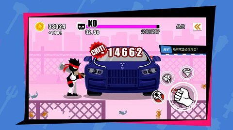 3、面对场景中的汽车,连续使用普通攻击可积累连击数,达到特定段数会触发特殊重击效果。