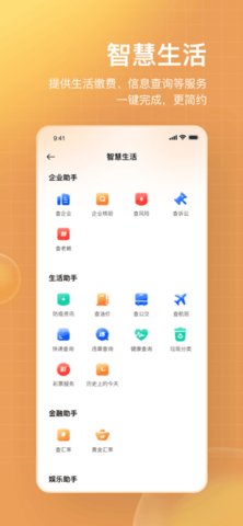 1、智慧社区模块整合了企业、金融与生活类助手,在一个入口内处理多种日常咨询与事务。