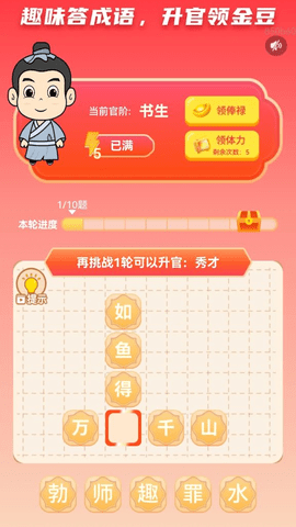 每次猜题机会只有一次,答错不会获得金豆且该题消失。建议遇到不确定的成语时,可利用其他工具查询后再作答。