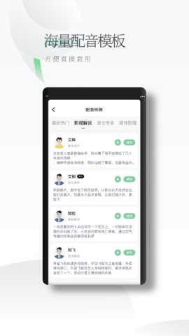 2、集成海量行业配音模板,涵盖广告促销、地摊叫卖等场景,为缺乏灵感的用户提供即用型解决方案。