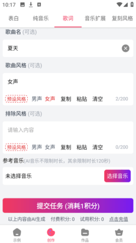 2、内置的歌词生成模块,可以在用户缺乏灵感时自动创作出符合主题的歌词。