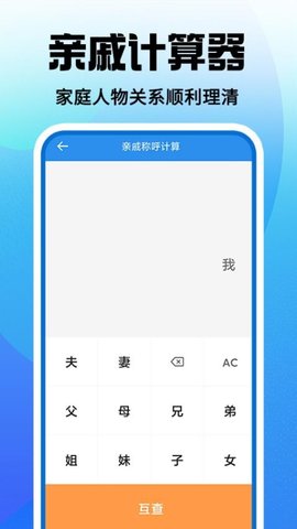 2、亲戚称谓计算可根据家庭关系输入,快速推导出准确的亲属称呼。