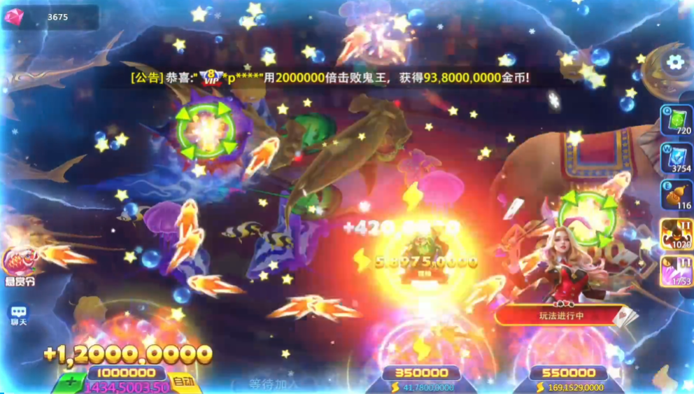 3、支持多名使用者进入同一渔场进行游戏,可以看到彼此的捕获情况,形成一种竞技氛围。