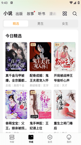 2、精选公版经典名著与优质出版书籍,涵盖中外文学、社科随笔等多个领域,满足用户的深度阅读需求。