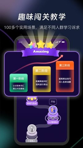 2、在主界面选择场景闯关,从购物、旅行等主题中挑选一个开始练习。