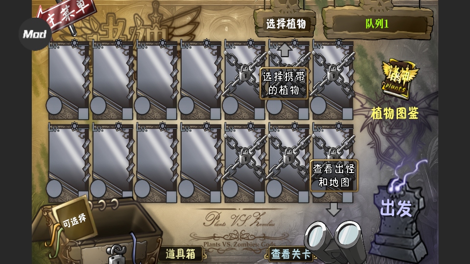 2、在选关界面根据僵尸的阵容特点进行植物搭配,优先选择属性相克的神话植物,例如用附带雷电效果的植物应对高护甲僵尸。