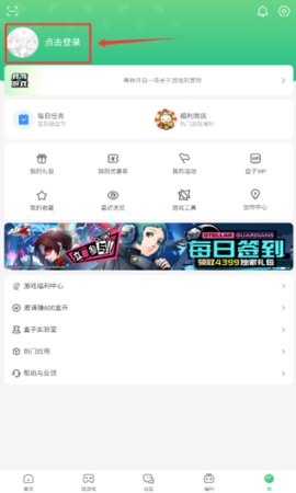 2、在个人中心页面找到红色方框标注的点击登录区域,点击后进入账号绑定流程。